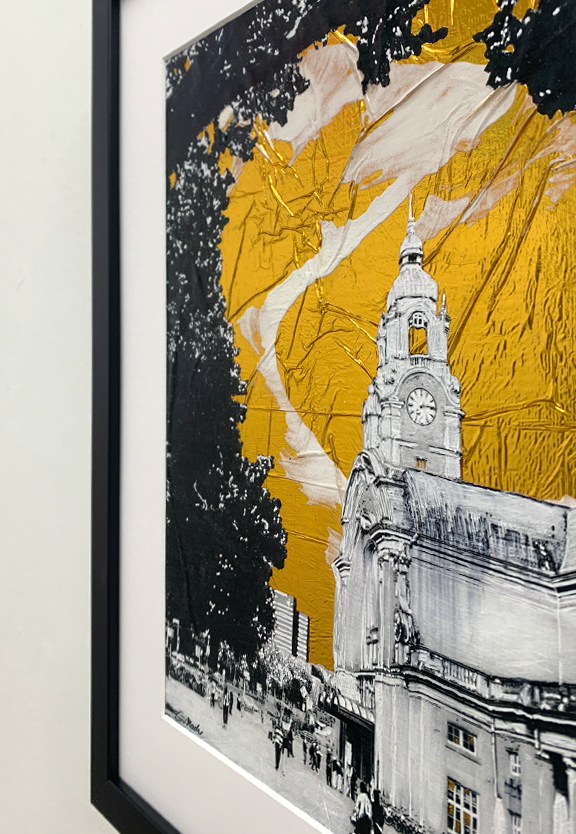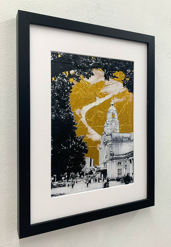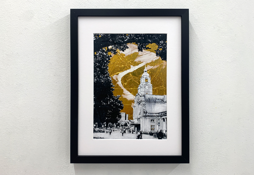 Collage, Scherenschnitt, Rettungsdecke, Papier und Acryl auf Papier