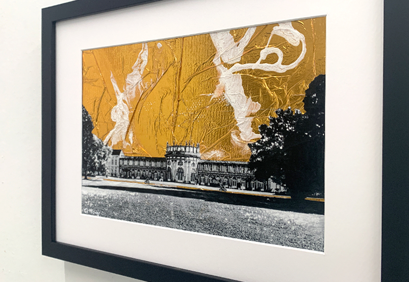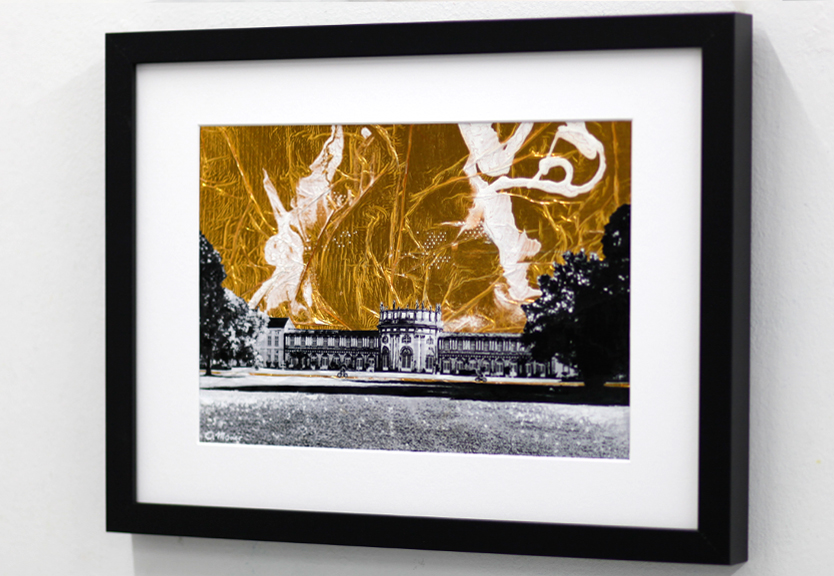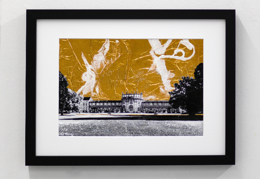 Collage, Scherenschnitt, Rettungsdecke, Papier und Acryl auf Papier