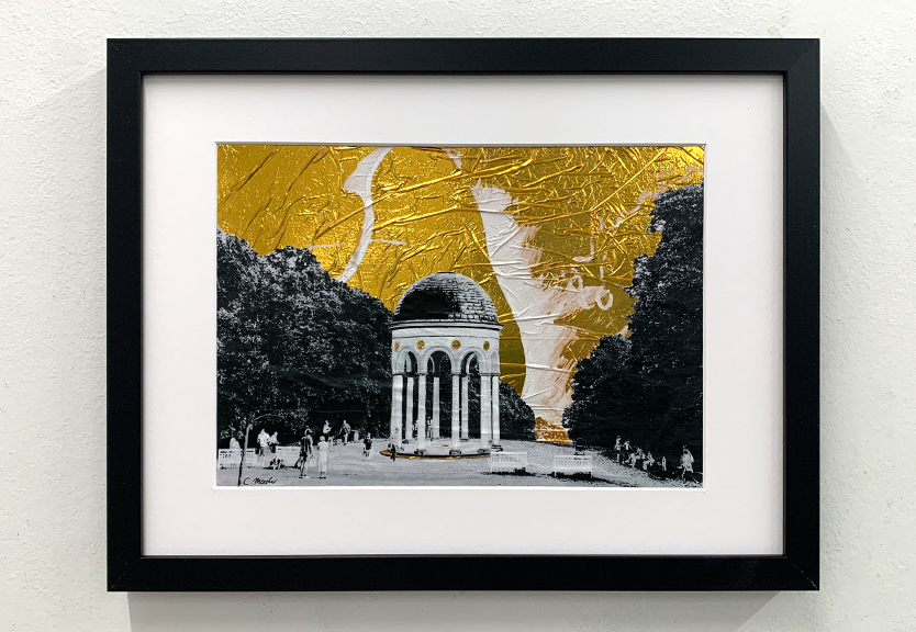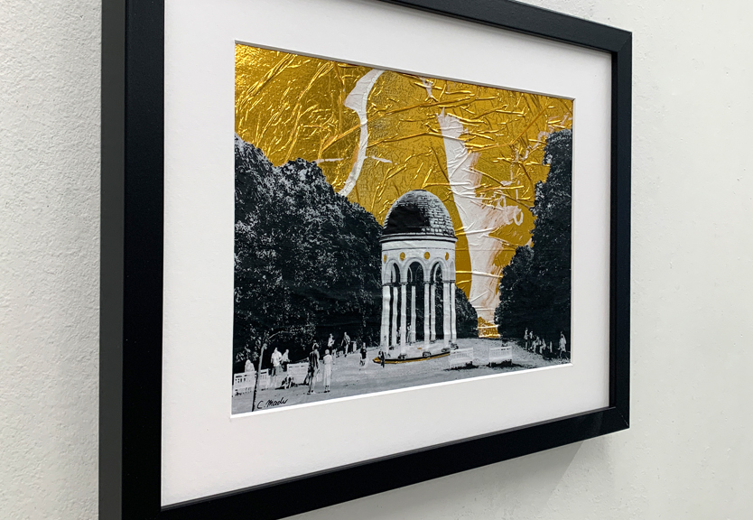 Collage, Scherenschnitt, Rettungsdecke, Papier und Acryl auf Papier
